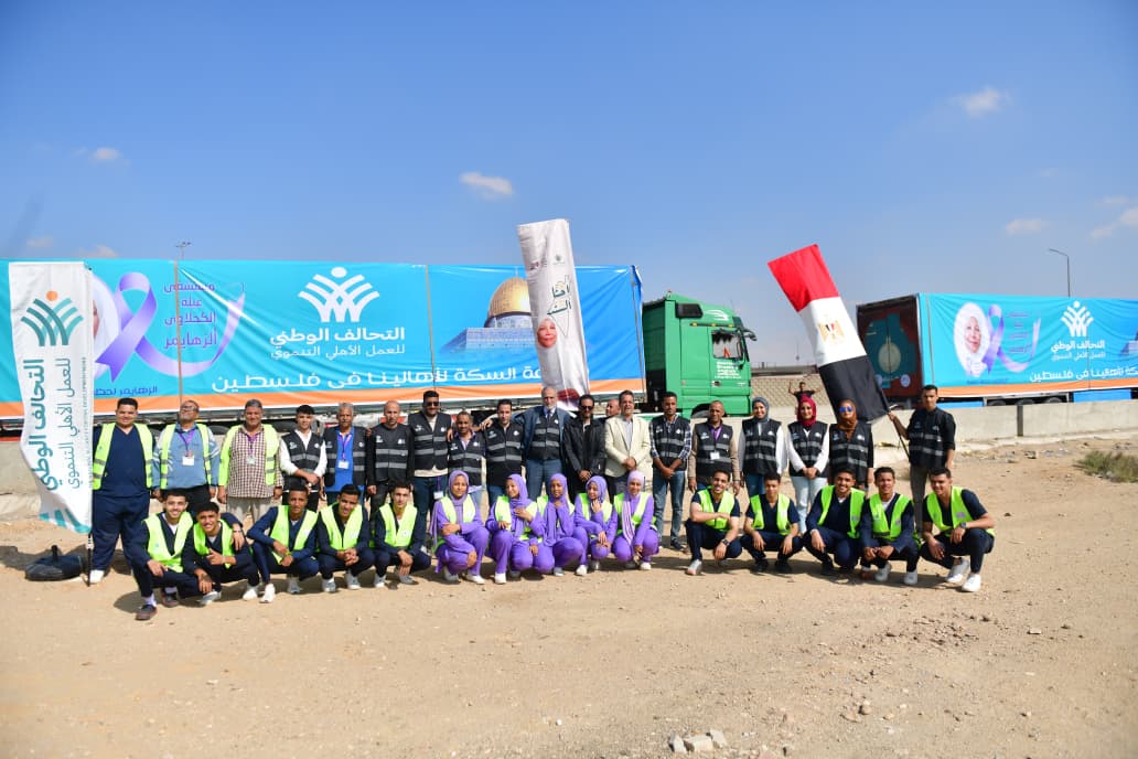 وأضافت أن فرق العمل والمتطوعين بالجمعية واصلوا جهودهم على مدار الساعة لإتمام عمليات التعبئة والتغليف والتحميل في وقتٍ قياسي، لتنطلق بعدها الشاحنات الاثنتا عشرة من أمام مقر الجمعية ومجمع عبلة الكحلاوي الرعائي والطبي لكبار السن ومرضى الزهايمر بالهضبة الوسطى بالمقطم، متجهةً إلى نقطة الالتقاء مع باقي مؤسسات التحالف، في مشهدٍ يجسد وحدة العمل الأهلي المصري تحت راية واحدة من أجل نصرة الإنسان.