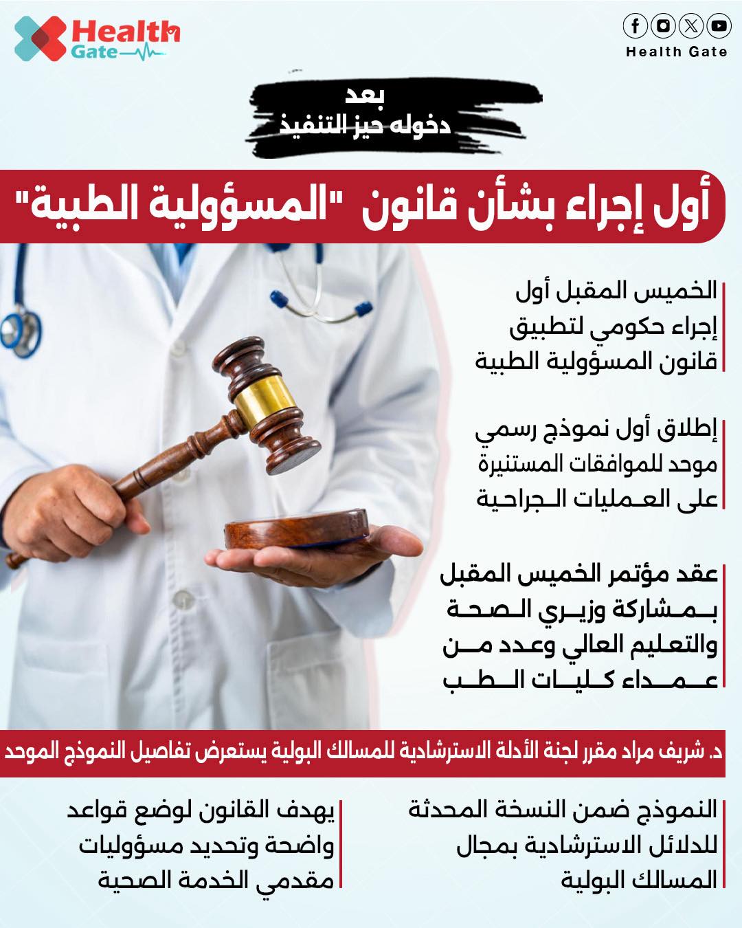 * قانون المسؤولية الطبية دخل حيز التنفيذ رسميًا بنهاية شهر أكتوبر الماضي