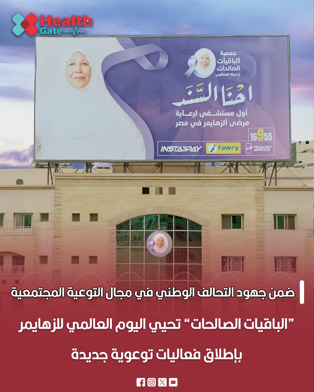 أعلنت جمعية الباقيات الصالحات، برئاسة الدكتورة مروي ياسين، وعضو مجلس أمناء التحالف الوطني للعمل الأهلي التنموي، عن إحياء فعاليات اليوم العالمي للزهايمر عبر إطلاق سلسلة من الفعاليات التوعوية الهادفة إلى تشجيع الحوار المجتمعي وتعزيز الفهم والحد من الوصمة المرتبطة بالمرض.